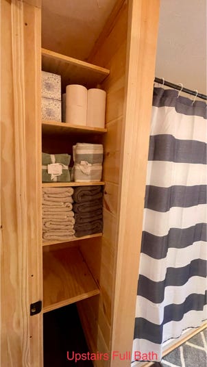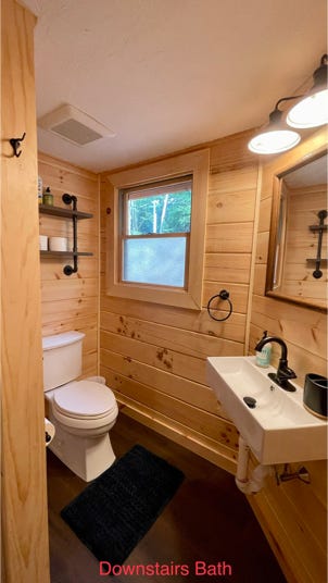 The cabin has 3 bedrooms and 2 full baths (2 queen beds, one set of bunk beds and a twin bed in the loft). Stove/Oven, Microwave, Toaster, Coffee Maker (by the pot or cup), 2 TV's, WiFi, A/C, Washer/Dryer, Covered Porch, Fire Pit, Outside Grill and is outfitted with bedding, pillows, Blankets, Bath & Dish Towels.